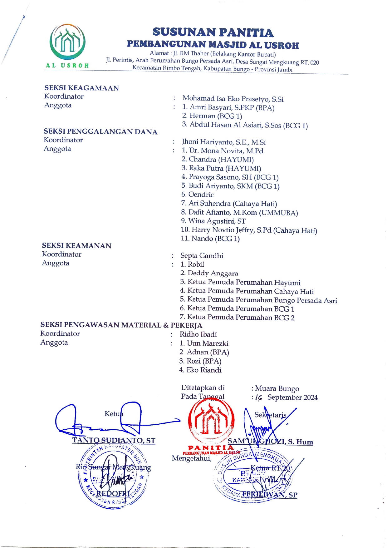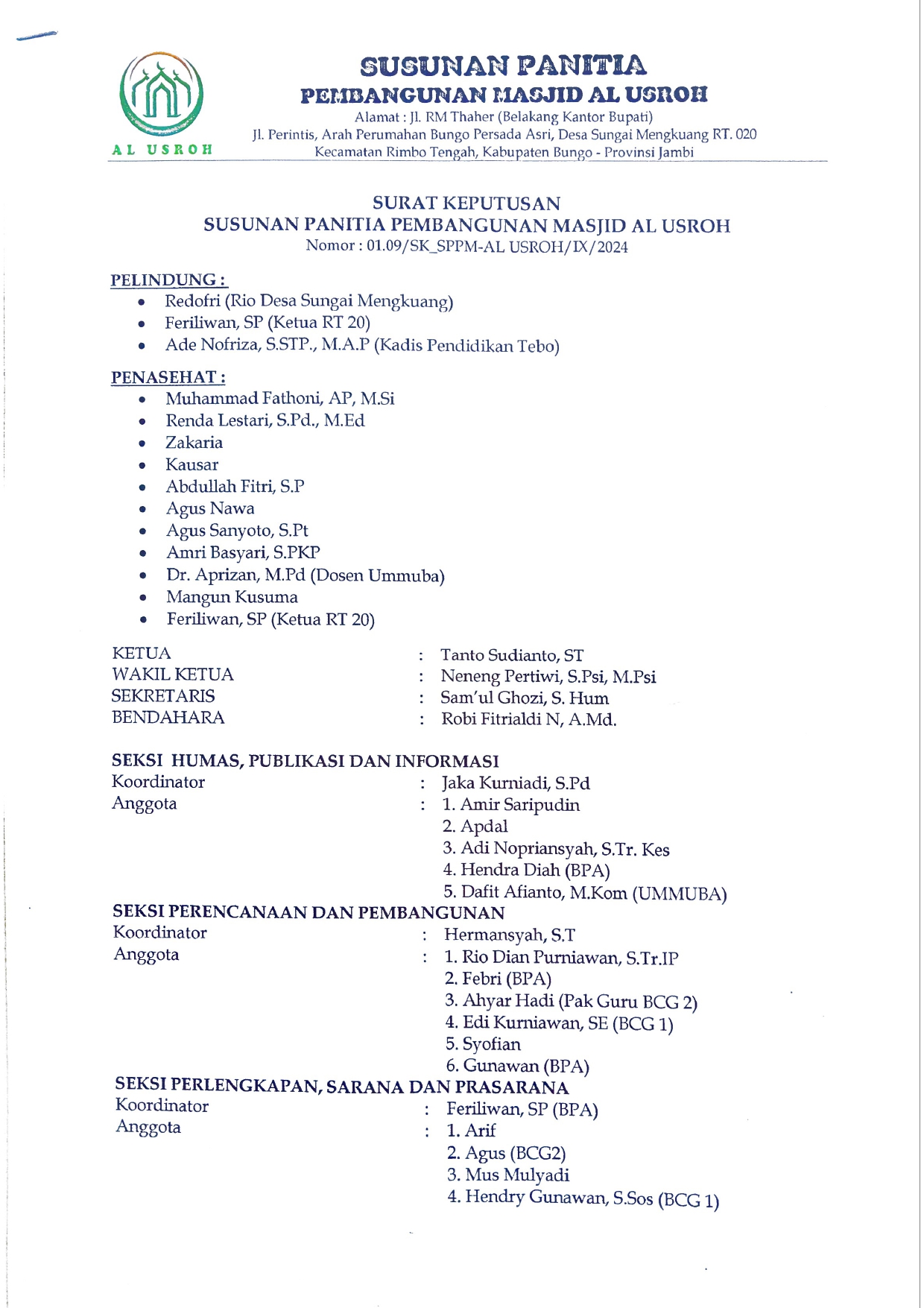 Panitia Pembangunan Masjid Al Usroh